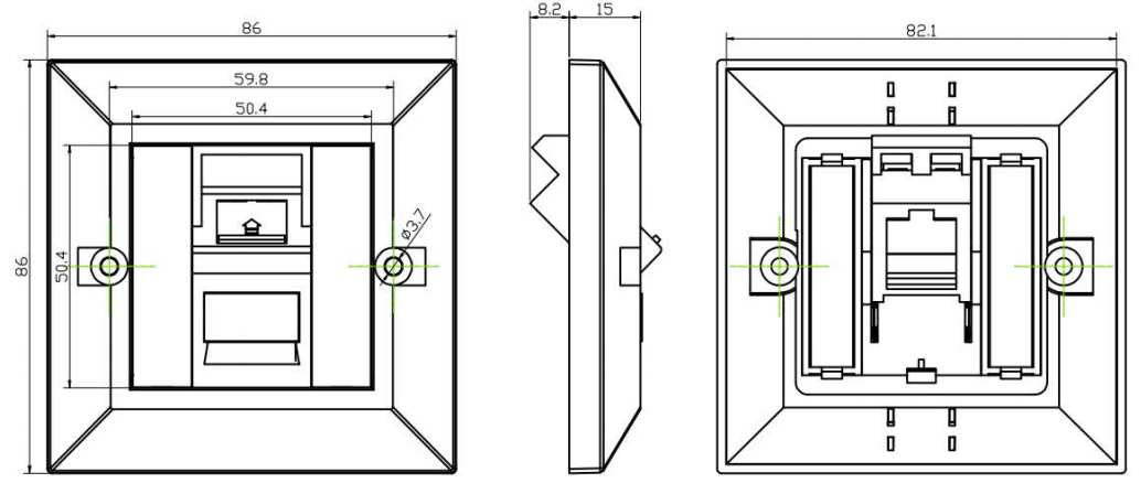Compatibilità con le piastre a parete: i frontali della porta sono progettati per essere compatibili con le piastre a parete standard. Ciò garantisce che possano essere integrati perfettamente con installazioni elettriche o di networking esistenti e offrire un aspetto coerente.